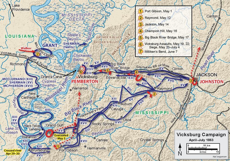 - Vicksburg: The city sat on a bluff. The Union victory came only after they successfully bypassed the “impenetrable” river-facing heights to attack from the landward rear.